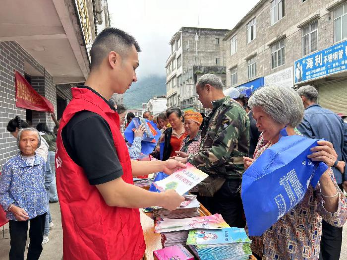 活动当天正值夏宜瑶族乡圩日,街道上人流如织,夏宜瑶族乡人民政府联合县司法局、应急局在夏宜街摆摊设点,吸引了大批群众驻足围观。