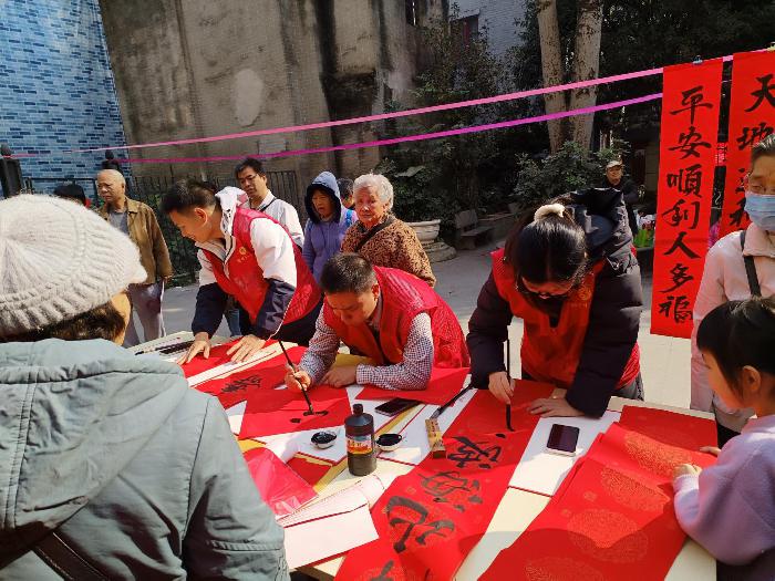 活动现场,热闹非凡。书法爱好者展纸伏案、挥毫泼墨,写下多副春联和新春福字,传达了共庆温暖佳节、共筑和谐社会的美好祝福;舞台上的文艺节目,以优美的舞姿、灿烂的笑容,展现出居民们积极向上的生活态度,散发出浓浓的春节气息。