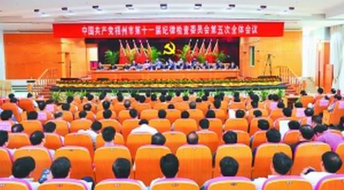 (记者 肖苗生) 2月24日,中国共产党梧州市第十一届纪律检查委员会召开第五次全体会议。会议认真学习贯彻党的十七大、十七届中央纪委三次全会精神和自治区纪委九届六次全会精神,回顾总结2008年我市党风廉政建设和反腐败工作,研究部署2009年工作任务。
