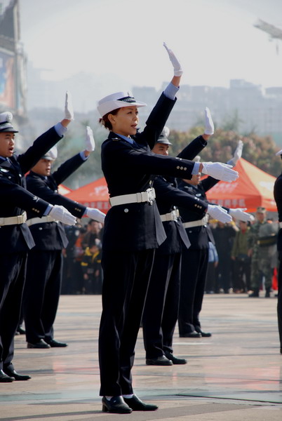 图为交通指挥手势团体操表演