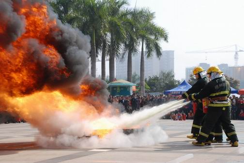 图为灭火技能表演
