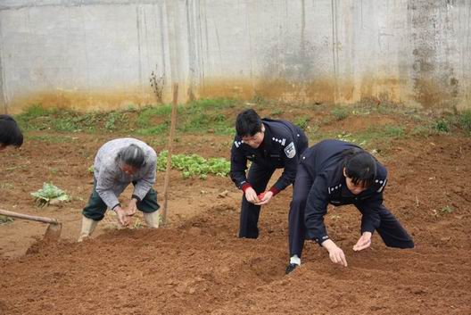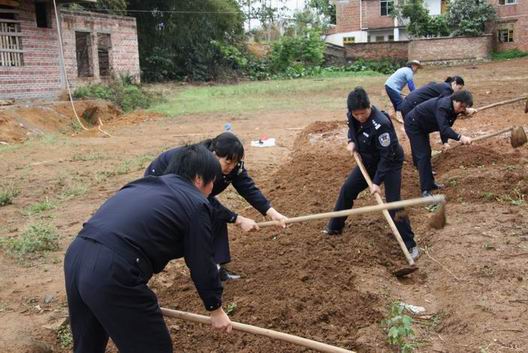该局妇工委在了解到藤州镇胜西村雅瑶组的李海宁丈夫患病,家庭缺少劳动力,时值春耕生产季节,看着邻居家的耕地纷纷播种,而自家的两块旱地仍杂草丛生,眼看春耕季节就要过去,李海宁心急如焚。2009年3月5日下午,局机关的5名女民警来到李海宁家,帮助李海宁开展春耕生产,女民警们除草、平地、播种,足足干了一个下午,终于为李海宁家的两块旱地种上了花生。