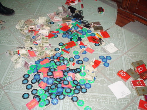现场缴获的赌资、赌具等