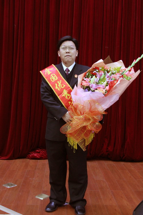 廖克东同志步入会场时,全体与会人员报以热烈的掌声,表达全市法院干警对全国英模的崇高敬意,大会还向廖克东同志献花祝贺。