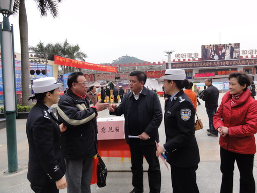 3月26日上午,梧州市的三个城区政法部门、综治成员单位分别设点开展形式多样的社会治安综合治理宣传活动,从而拉开了全市综治宣传月活动的序幕。