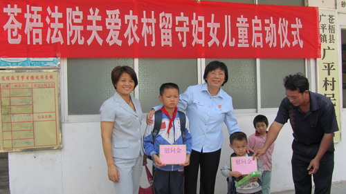 5月26日上午,苍梧法院“妇女儿童维权岗”在广平镇广平村举行“关爱农村留守妇女儿童活动启动仪式”,该院党组书记、院长陈文萍在仪式上发言,她郑重承诺:将立足本职工作,坚守司法良知,奉献司法智慧,做广大农村留守妇女儿童的知心朋友。
