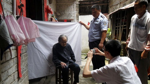 在为夏郢镇思委村粟田组的百岁老人苏秀英办完拍照后,其家人十分感动地说:“我们家人正在为老人如何去办证中心拍照的事而犯愁时,你们民警及时上们服务,真是雪中送炭,非常感谢了!”