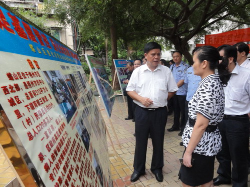 在蝶山区,竺书记边走边看边问边议,使大家深受鼓舞、受益匪浅。走进下三云派出所,竺书记逐一询问了流动人口和特殊人群管理以及开展“三大战役”等情况。当了解到该所实施以出租屋管理为重点的创新流动人口管理试点工作取得初步成效时,竺书记频频赞许,并敦促干警们要进一步明确责任、落实到人,建立健全管理机制,与社区、街道和居民群众形成合力,最大限度减少遗漏;以管好流动人口配合开展“三大战役”行动,坚决打击犯罪,确保一方平安;建档管理精神病人,做到一人一档;全面掌握刑释解教人员动态,多渠道帮助他们重获新生,消除隐患,杜绝二次犯罪。
