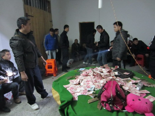 近段时间以来,蒙山县公安局蒙山镇派出所民警通过调查发现,在蒙山县蒙山镇回龙村石柱组一住宅内有人聚赌,赌博分子为了逃避打击还专门派人望风。获此情况汇报后,县公安局党委对此高度重视,副县长、公安局长徐宏彪指示:坚决严厉打击我县的赌博风气,对涉案人员严肃处理,绝不姑息。蒙山县公安局经过精心组织,周密部署了抓捕行动。12月9日凌晨1时许,蒙山县警方出动了40多名民警,兵分三路,将正在参与赌博的黎某等30名涉赌人员全部抓获。