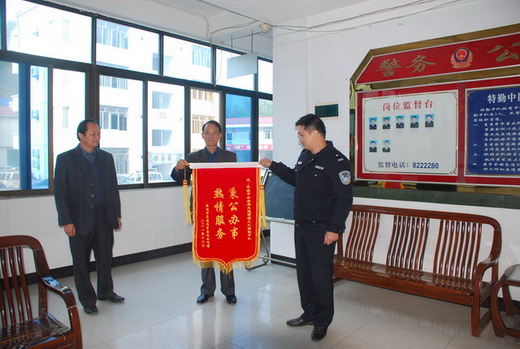 12月23日上午,广东省深圳市长途汽车客运公司委托金辉运输有限公司岑溪分公司工作人员向岑溪市公安局交通管理大队特勤中队送来了一副“秉公办事、热情服务”荣誉锦旗,该公司对特勤中队在岑梧高速公路上协助其公司客车及司机摆脱一次“困境”,表示感谢。