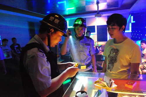 到达目的地后,民警分成若干个清查小组,对场所内每个包厢逐一进行检查。在此次行动中,民警通过对在场人员搜查、尿检后发现,其中4个娱乐场所有涉毒现象。民警当场查缴了现场的K 粉残留物和其他涉案物品,并随即将涉毒人员带回公安机关审查。