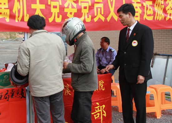 岑溪法院党总支部结合党员义工服务队“情暖冬日”主题活动,组织了由三十多名党员义工组成的春运服务队,备上包子、馒头、姜糖水、热茶、饮料等一大批食品和摩托车打气筒等简单的维修工具,来到返乡农民工路经人数最多的玉梧一级路昙容收费站休息区,免费为他们提供服务。一声声亲切的问候、一杯杯温暖的热茶、一袋袋香甜的包子,驱走了长途跋涉的农民工的一副副倦容。他们一边休息一边和我们拉起了家常,从出外打工的辛苦说到对家中老人孩子挂念,当得知我们法院的党员义工有很多是法官,更是高兴,就他们亟需知道的如何维护农民工合法权益的法律法规知识进行了咨询,在场的法官热情地一一予以解答,在向他们送上物质温暖的同时,还送上了“法律大餐”。