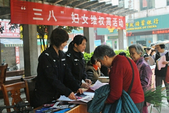 “这两夫妻打架也可以维权啊?”一位老妇女惊讶地向我局民警咨询到。为增强妇女法律意识,深化妇女法制宣传教育,强化妇女维权服务,3月6日上午,藤县公安局、妇联、普法办、司法局等单位在藤县政府广场联合开展“三八”妇女维权周活动。2013年是“三•八”国际劳动妇女节103周年,也是“三•八”妇女维权周活动13周年。
