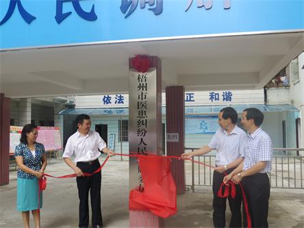 9月25日上午,“梧州市医患纠纷人民调解委员会”正式挂牌成立,医患纠纷人民调解工作领导小组各成员单位、市直各医院领导约40人参加了揭牌仪式。市政府副市长补祥斌、市委政法委副书记雷冰出席并为医调委揭牌。