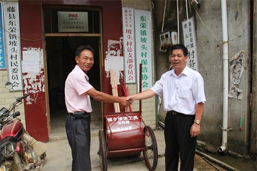 藤县法院向坡头村村委赠送清洁工具