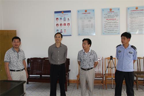 检查组查看了司法所硬件设施、工作台账,并对“温馨之家”服务平台、司法E通平台监控定位及刑释解教人员信息管理等情况进行了抽查。蒙局长与基层司法行政工作人员亲切交谈,认真听取他们的意见和建议。同时勉励司法干警,要充分发挥特长优势和工作热情,为基层司法行政工作增添活力和光彩。蒙局长强调,在当前形势下,司法所工作一要进一步加强和完善司法所规范化建设。在上级司法行政机关的正确领导下,在镇党委、政府的大力支持下,从完善各项规章制度入手,强化职能意识,扎实推进司法行政各项工作深入开展。二要深入开展法制宣传工作。通过张贴、悬挂宣传标语,发放宣传资料,开展法律服务咨询等形式,加大宣传力度。特别是对特殊人群及流动人口,应定期开展针对性宣传教育,常抓不懈。三要注意工作的方式方法。注重抓特色、抓亮点,不断提高发现新情况,解决新问题的能力。四要加强干部队伍建设。提高司法干警个人修养和综合素质,努力建设一支领导放心、群众满意的司法行政队伍。