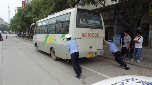 近日,苍梧交警大队民警在县城道路巡逻时,发现一辆公共汽车停在路边,响警报也不走,严重影响道路交通安全,见此情景,民警停下车上前询问司机才知道原来是车突然熄火了,开不走了,不由分说,民警走到车后叫上司机一起把车推到安全的地方停放。司机连忙直说谢谢!这时路边群众都纷纷表示称赞,苍梧交警很好嘛,这么热的天还帮忙推车,热得汗流浃背的,真是值得表扬表扬呀,赞一个!