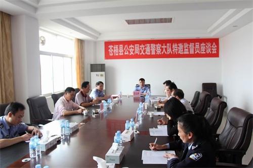 为了更好地推动苍梧交警大队各项工作的开展,接受社会监督,日前,苍梧交警大队特别邀请了县人大、政协、检察院、信访局、绩效办以及县广电局和交通运输企业、社会人士等各届人士召开了特邀监督员座谈会,苍梧县公安局纪委副书记、纪检监督室主任莫成洲参加了座谈会。