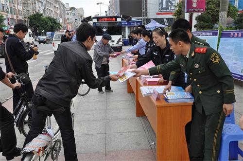 为进一步提升群众的法律意识,近距离服务群众, 2013年11月13日,岑溪市公安局在人民广场开展“警务广场”主题宣传活动。岑溪市公安局政委黄云龙及110、刑侦、经侦、禁毒、治安、治安、交警、消防等警种代表10余人参加了本次活动。
