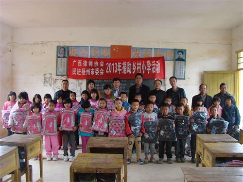为了提高律师参与维护未成年人合法权益的积极性,在中小学中普及法律知识,11月14-15日广西律师协会未成年人保护委员会、梧州市司法局、律师协会、民进梧州市委会共同在梧州市技工学校、第三中学、工厂路小学、岑溪市大业镇洄龙小学开展捐助乡村小学贫困学生、法制宣传教育、未成年人权益保护工作调研等活动。