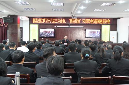 12月6日下午,藤县法院召开全院干警大会,组织学习了党的十八届三种全会、“枫桥经验”50周年会议精神,进一步领会把握了全会精神和“枫桥经验”精髓。该院党组书记、院长石忠贵主持会议。